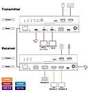 I LED di stato aiutano l'utente a controllare l'alimentazione, l'host attivo, il collegamento tra trasmettitore e ricevitore e se il trasferimento dei dati è in corso, mentre le porte aggiuntive RS232 e FSYNC GPIO pass-though consentono di inviare comandi bidirezionali adatti anche a telecamere industriali. La commutazione tra i due host può essere effettuata tramite il pulsante sul pannello frontale del trasmettitore o può essere impostata come automatica; è inoltre possibile controllare l'extender tramite comandi API.