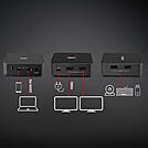 - Controllo di due laptop, smartphone o tablet tipo C da una postazione con tastiera, mouse e 2 schermi